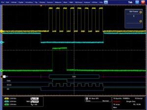 FastFrame? - 使用用戶可以選擇的存儲段,可通過以帶時間標記的方式捕獲 SPI 總線數據和分析多個數據包上的串行總線解碼,有效管理存儲。 此處所示的是幀 1、2 和 9。